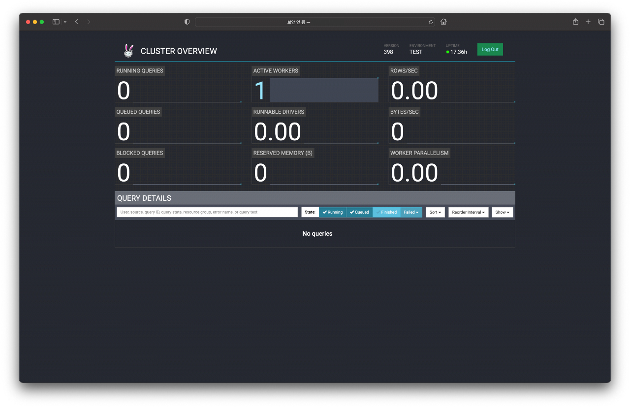 10. 웹브라우저에서 해당 머신의 IP:8080으로 접속하면 Trino 초기화면에 접속합니다.